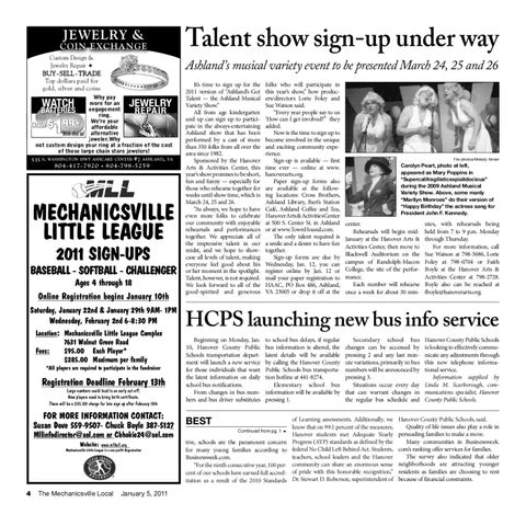 folks who will participate in this year’s show,” how producers/directors Lorie Foley and Sue Watson said. “Every year people say to us ‘How can I get involved?” they added. Now is the time to sign up to become involved in the unique and exciting community experience. Sign-up is available — first time ever — online at www. hanoverarts.org. Paper sign-up forms also are available at the following locations: Cross Brothers, Ashland Library, Bart’s Station Café, Ashland Coffee and Tea, Hanover Arts & Activities Center at 500 S. Center St. in Ashland or at www.TownHound.com. The only talent required is a smile and a desire to have fun together. Sign-up forms are due by Wednesday, Jan. 12, you can register online by Jan. 12 or mail your paper registration to HAAC, PO Box 486, Ashland, VA 23005 or drop it off at the