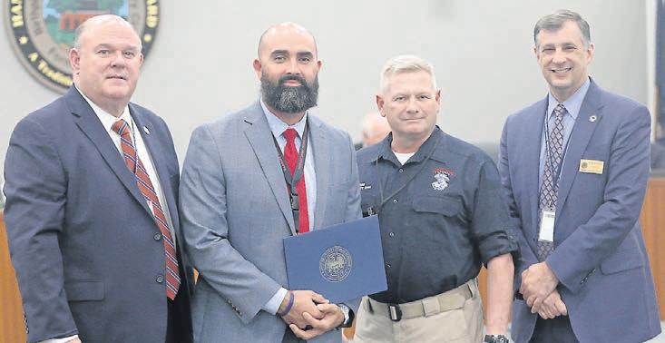 to inclement weather forecasts. Despite the lastminute change and a series of tornado warnings, the afternoon attracted over 100 attendees to participate in the moving celebration and recognition of those who have served and continue to serve in the nation’s military.