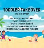 Forages 1monthto6years, 1hour of cartoons& familyfriendly fare! Concessions willbeavailable andthetheatre lights willbe