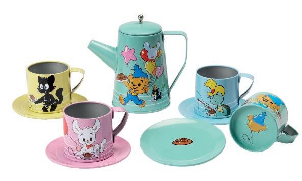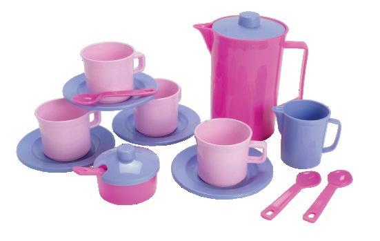 Kaffe- eller teservis. Med koppar, fat, kanna m.m. Tål maskindisk. 17 delar. Från 3 år. Ord.pris: 149:-