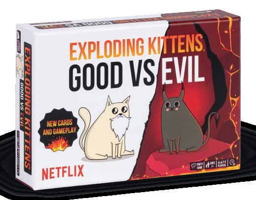 Exploding Kittens: Good vs Evil. Se till att inte explodera. Sist överlevande vinner. Med Armageddonkort. 2-5 spelare. Från 7 år. Ord.pris: 349:-