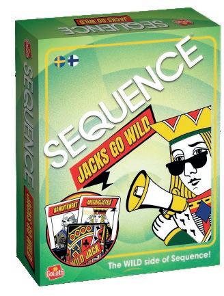 Sequence: Jacks Go Wild. Få 5 i rad och vinn. Med 52 Jacks-kort som ger specialkrafter. 2-12 spelare. Från 7 år. Ord.pris: 479:-