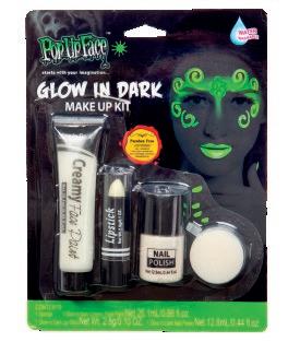 Makeupset Självlysande. Med ansiktsfärg, läppstift, nagellack och svamp. Från 14 år.