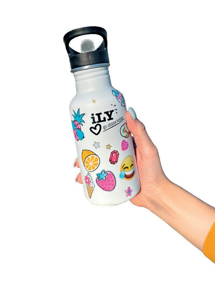 iLY. Hydro Bottle. I BPA-fri aluminium med skruvkork och sugrör. Med 2 färgpennor och 60 klistermärken. Från 6 år. Ord.pris: 249:-