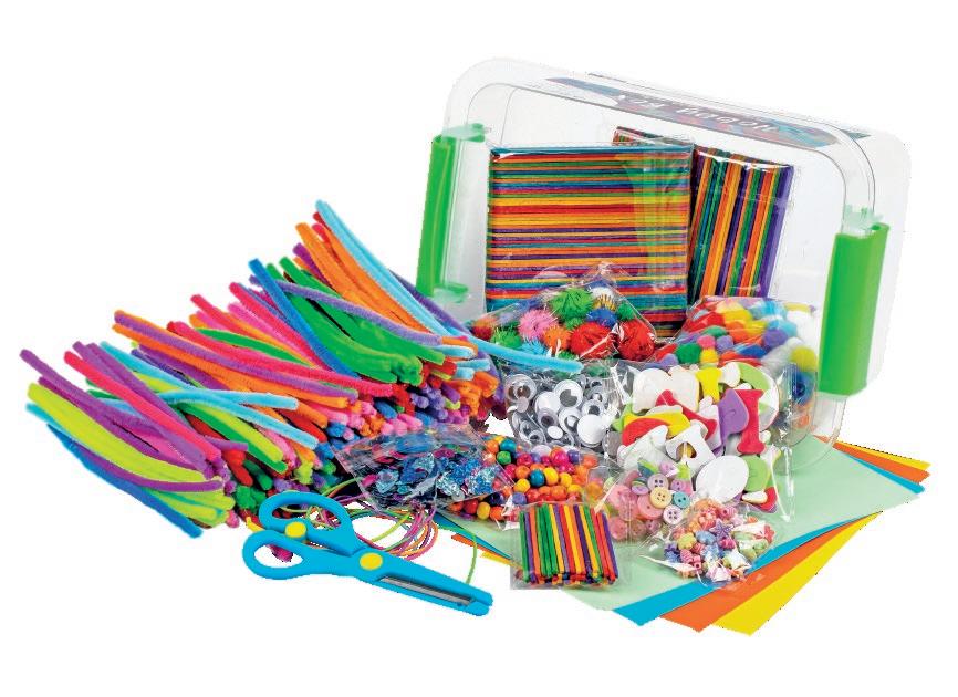 Pysselbox. Med sax, pärlor, knappar, bokstäver, konfetti m.m. 1600 delar. Från 3 år.