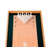 Bordsspel. 3-i-1. Shuffleboard, curling och bowling. Med 8 rollerkulor och 10 bowlingkäglor. Från 3 år. Ord.pris: 699:-
