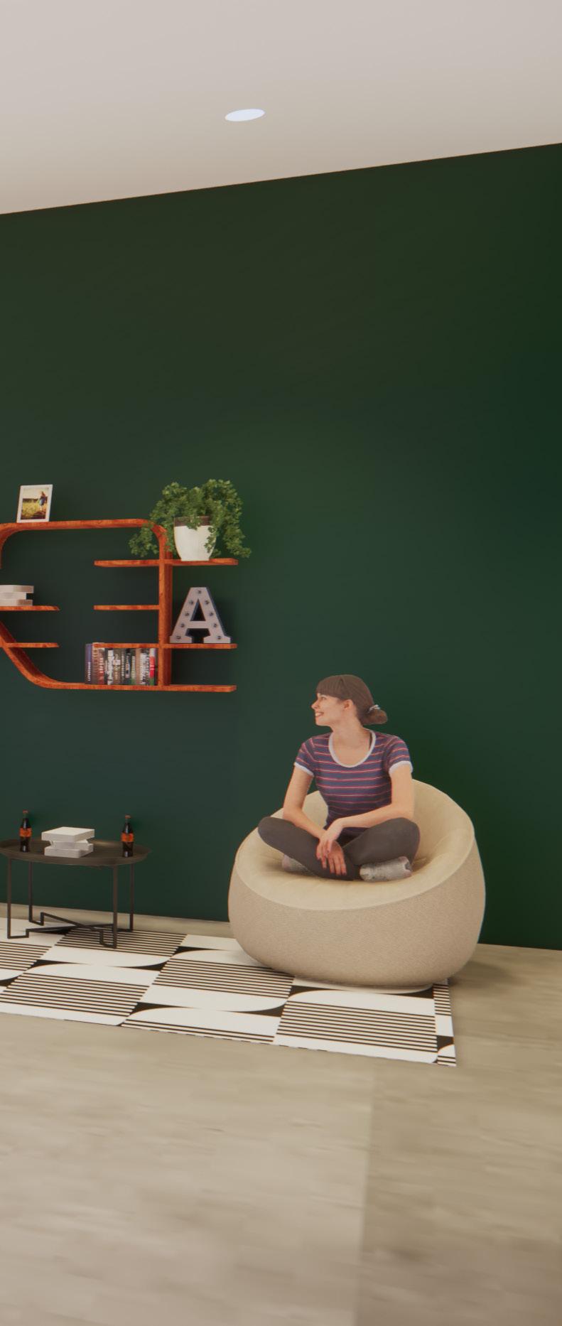 This is a luxury midcentury modern vacation home created for the social media influencer, Emma Chamberlain. This house includes a mix of natural materials, neutral colors, and various geometric and organic forms. It is meant to be an escape from Emma’s busy LA life, while portraying her playful personality.