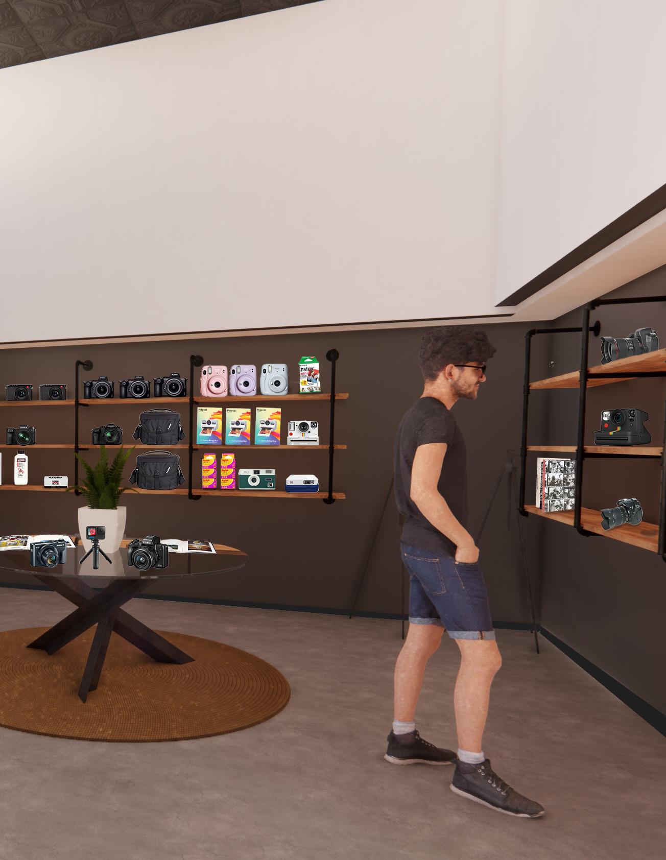 Snapshot Studios is meant to be a one stop shop for any camera needs. Our team was given a pre-existing space in downtown Ames, IA to design a store that we believe would do well. Included in this store is a photo studio, darkroom, print station, polaroid wall and merchandise.