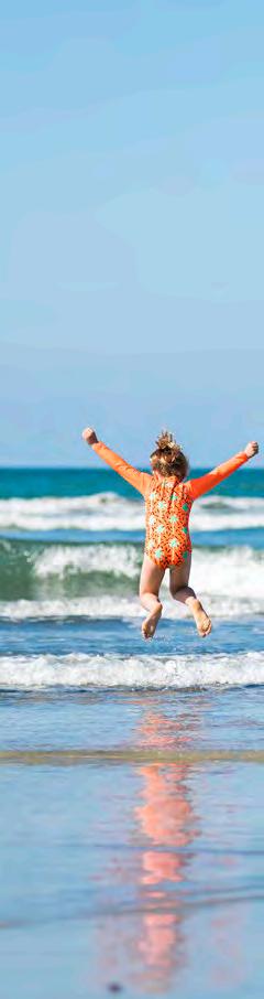 With 125 kilometres of coastline, the Bay of Plenty is made for beach lovers. Paddleboard, kayak, dive or surf your way through crystalclear waters. Spot dolphins dancing offshore, penguins waddling along the sand, seals sunbathing, or even whales and orca gliding past. Ōhope Beach is a crowd favourite for a reason. Eleven kilometres of pristine white sand, sun-drenched all year, framed by Pohutukawa trees, make it a perfect spot to walk, swim, surf or simply unwind. Mount Maunganui Beach, Waihi, Pukehina and Papamoa also deliver iconic Kiwi beach vibes, so take your pick and soak it all in.