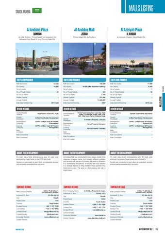 contact details Al-Andalus Property Company POBox 2323 Riyadh 12222 Saudi Arabia +966 11 461 4400 +966 11 201 1295 hamat@hamat.sa www.hamat.sa www.alandalus-mall.com