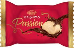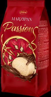 Marzipan Passion pralines are fancy sweets with a rich soul. Delicious dark chocolate envelops the marzipan filling, creating a hard-to-resist unique symphony of flavours. Every single praline is in hermetic flowpack wrapper Product is available in following formats: 180g gift format, 1kg bag and different bulk formats.