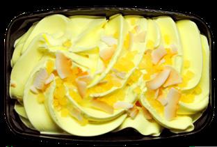Ice cream that tastes like summer. Soft, smooth cream-based ice cream (30%) with an intense pinacolada flavour, brings back holiday memories. An energising pineapple sauce was swirled into the mass, and the top was sprinkled with toasted coconut chips and chunks of candied pineapple. The product is available in the following formats: 500 ml, 1000 ml, 5000 ml.