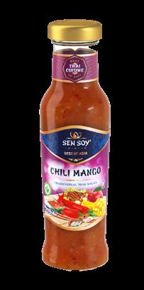 Thai Chili Mango Sauce - Sen Soy - authentic, Thai, thick, sweet sauce based on natural ingredients: chilli and mango. It can be used both as an addition to original Asian dishes, such as shrimps or tempura vegetables, as well as to more traditional dishes such as ribs, cutlets or even sausages. Chilli Ananas Sen Soy sauce is also perfect as a dip for vegetables, nachos and nugets. It does not contain monosodium glutamate or other flavor enhancers.