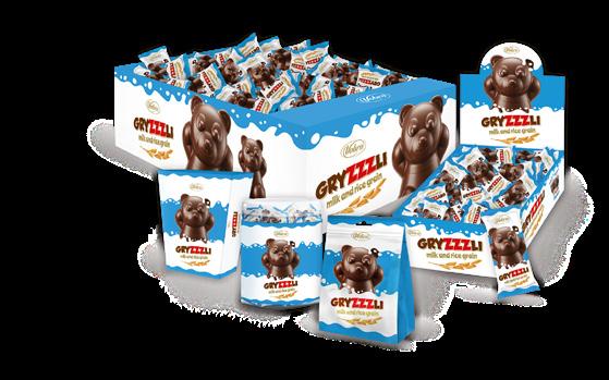 Gryzzzli, our bear-shaped chocolates are just one of a kind. These teddy bears full of sweetness have a magical power to attract ! Have a bite and enjoy the milky filling with grains of puffed rice. The unique sweetness of the chocolate bear will make you want