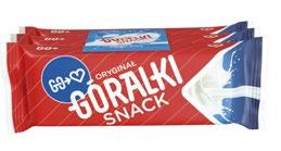 Góralki Snack! Pyszne, uwielbiane wafelki w polewie obwodowej teraz w zupełnie nowym formacie! Wafelki na dwa gryzy (27 g), pakowane w multipakach po 3 sztuki. Idealne do kieszeni, do torebki, do szkoły, na drogę, na wycieczkę, do śniadaniówki, do dzielenia się! W sam raz, kiedy masz ochotę na coś słodkiego. Pyszna poręczna słodka przekąska, którą możesz mieć zawsze ze sobą i jednocześnie robić to co kochasz.