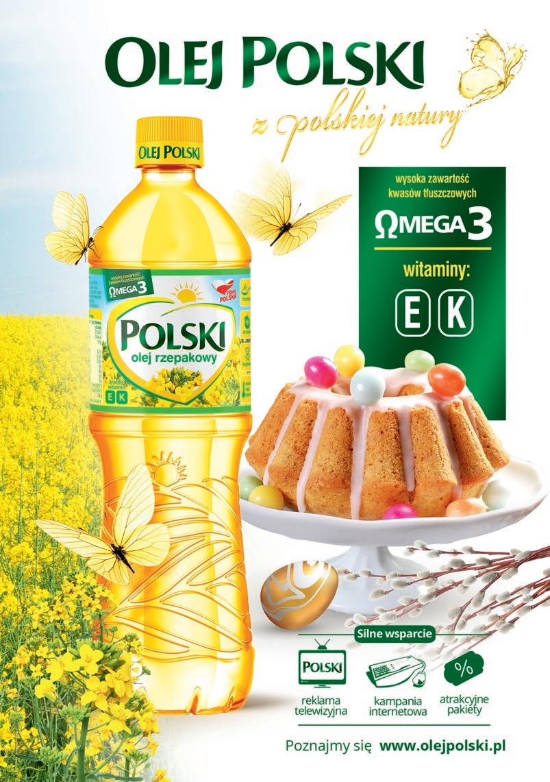 Olej Polski to w 100% polski olej rzepakowy. Tłoczony wyłącznie z polskiego rzepaku, przez polską firmę w nowoczesnym, polskim zakładzie produkcyjnym w Kosowie Lackim. Jest doskonałym źródłem witamin E oraz cechuje go wysoka zawartość bardzo pożądanych kwasów tłuszczowych Omega-3. Dzięki unikalnemu procesowi rafinacji doskonale nadaje się do smażonych i pieczonych potraw za sprawą wysokiej temperatury dymienia. Jednocześnie pozostaje niezwykle uniwersalnym olejem. Świetnie sprawdzi się również jako baza do sałatek, sosów, zup, a także wypieków i deserów.