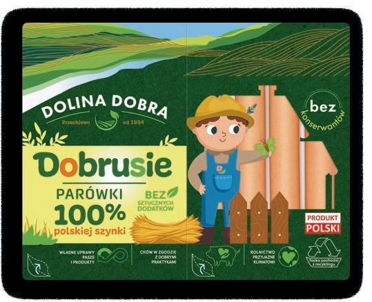 Parówki dla dzieci od Doliny Dobra to produkt z najwyższej jakości polskiego mięsa wieprzowego. Oprócz niego znajdziemy w nim tylko przyprawy i naturalne dodatki – bez konserwantów czy alergenów. Ich mocnym wyróżnikiem jest smak, przebadany na grupie najmłodszych respondentów, którzy wskazywali ich przewagę smakową nad liderem kategorii parówek dziecięcych. Dobrusie powstały w oparciu o unikatowy model produkcji „od pola do stołu” na który składają się własne pola uprawne, hodowle, pasze i zakłady przetwórcze. www.DOLINADOBRA.pl