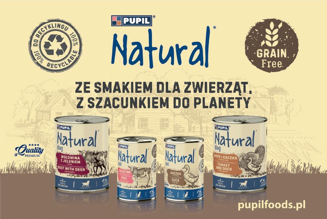 Natural to doskonała pełnoporcjowa karma mokra przeznaczona dla psów wszystkich ras. Zawarta w niej wołowina i mięso z jelenia zapewniają psu bardzo dobrej jakości białko i tłuszcz. Dodatek dyni jest doskonałym źródłem włókna pokarmowego, beta karotenu i witaminy A, które wpływają na stan skóry zwierzęcia. Nasiona babki płesznik znakomicie regulują pracę przewodu pokarmowego. Karma jest podana w uwielbianej przez psy formule all meat. www.PUPILFOODS.pl