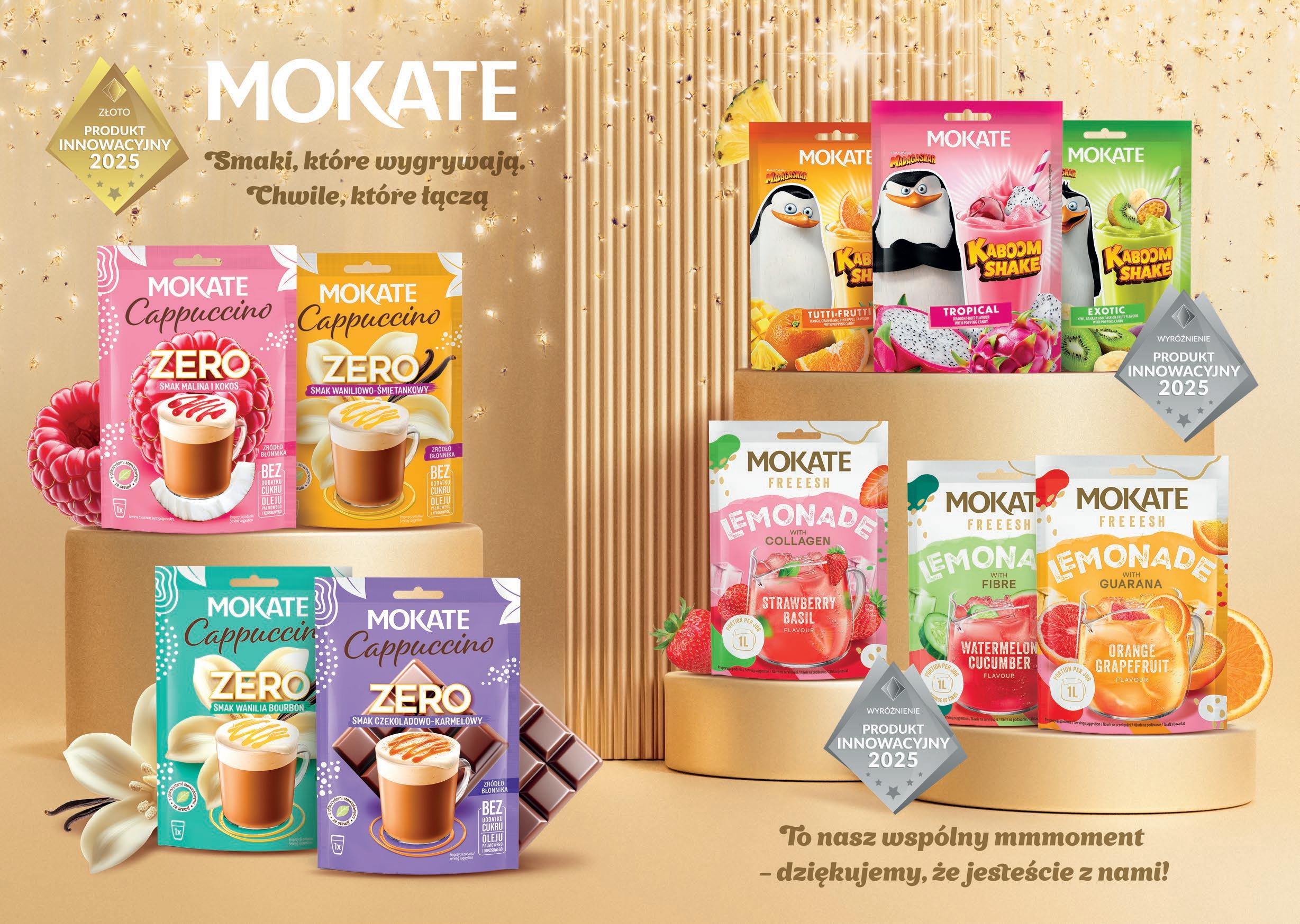 Mokate poszerza swoją ofertę o linię Matcha Latte ZERO – innowacyjną propozycję dla konsumentów poszukujących lekkich, smacznych i funkcjonalnych napojów bez dodatku cukru. Produkt zawiera japońską zieloną herbatę matcha o właściwościach pobudzających i wspierających koncentrację. Nowość dostępna jest w dwóch wyjątkowych wariantach smakowych: Mango & Ananas – orzeźwiającym i tropikalnym – oraz Wiśnia & Acerola: intensywnym i soczyście owocowym. Mokate Matcha Latte ZERO to doskonałe połączenie egzotycznego smaku z naturalnym pobudzeniem – idealne na każdą porę dnia.