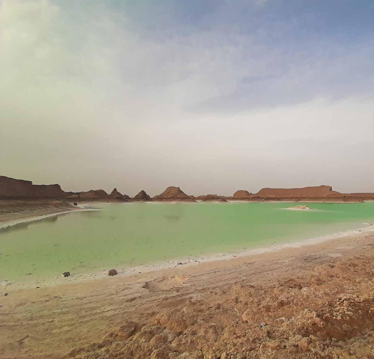 Lago sazonal no deserto. Imagem: Iman Fakhri, Wikimedia Commons.