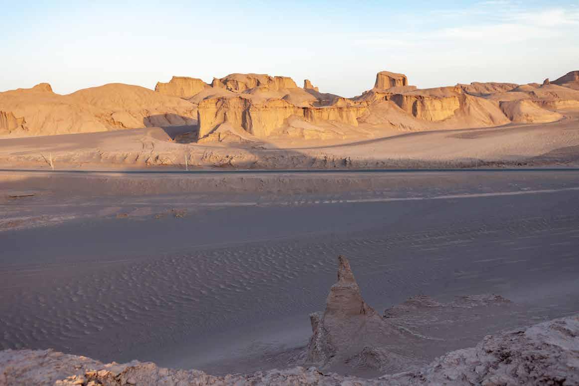 O clima árido da cidade e a proximidade com o deserto a tornam um destino único, atraindo aventureiros e pesquisadores. A área ao redor apresenta dunas de areia, salinas e os famosos Kaluts, imponentes formações esculpidas pelo vento que criam uma paisagem de outro mundo.