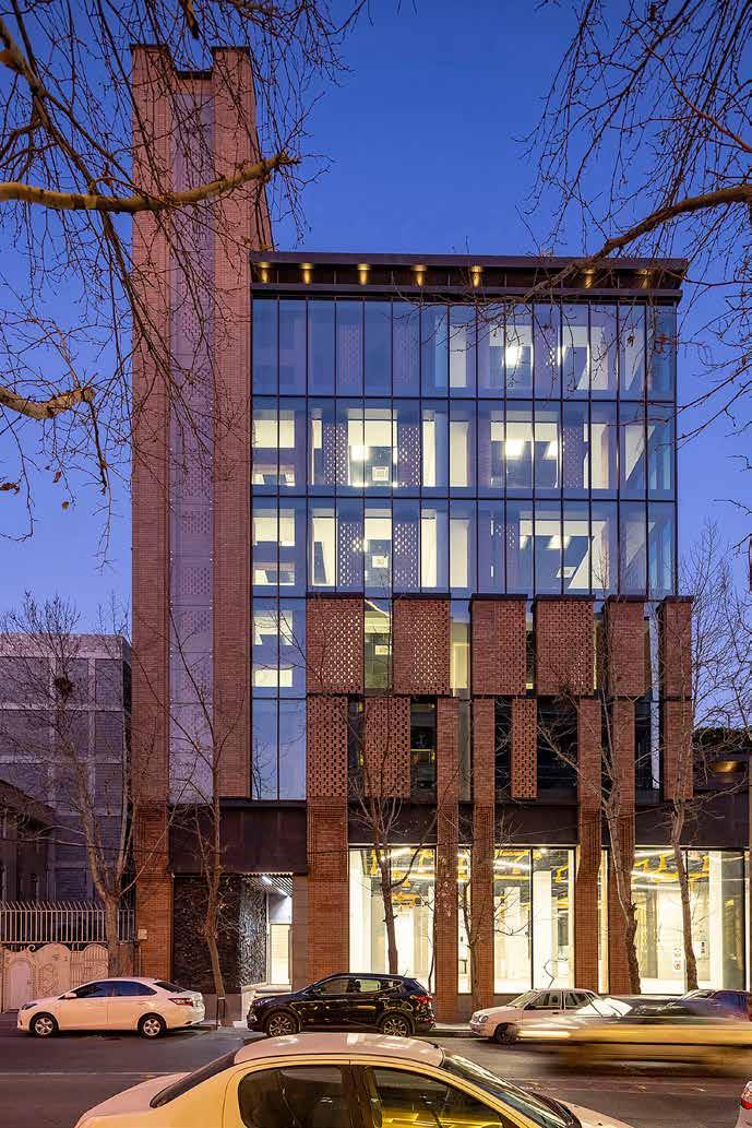 O design do edifício integra tijolos artesanais tradicionais com materiais modernos como vidro e concreto, criando um diálogo entre a herança arquitetônica do Irã e o design contemporâneo. Essa abordagem não apenas homenageia o passado, mas também atende às necessidades da vida urbana moderna.