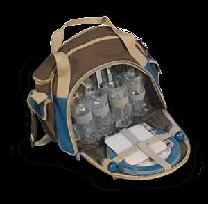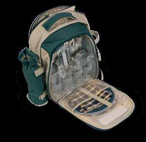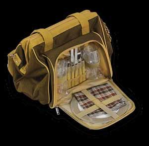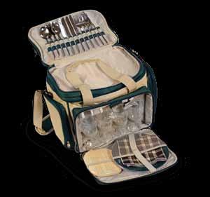 térmica cinza/verde para 4 pessoas, pratos, talheres, copos