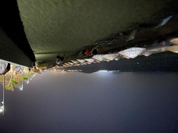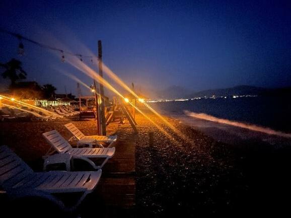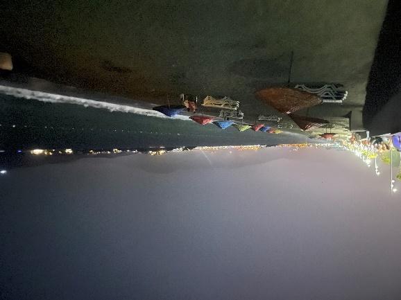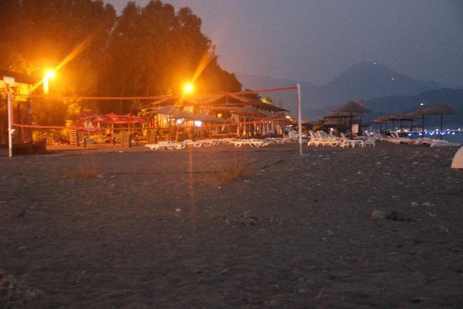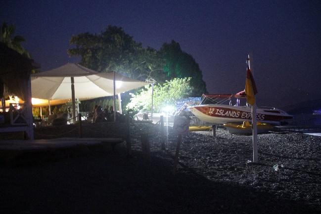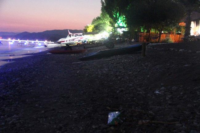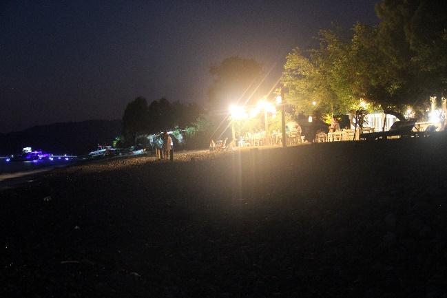 Akmaz Beach was completely empty at night, free of picnickers, with only the new facility’s lights reflecting on some part of the beach (Fig.56). The rest of Yanıklar Beach, especially the pristine area was empty and pitch dark at night. Towards north, where facilities start, Lykia Botanika was not using lights at night, including its quay which was fitted with dim lights this year, but Kafi Café was highly illuminated (Fig.38b, Fig.57a b). A security light between Okaliptüs and Tuana, next to the water sports area created very serious light pollution with an exceptionally bright white light (Fig.37a b). A plastic drainage pipe outlet was seen at the base of this light’s post (Fig.58). All water sports equipment were left on the beach at night in this section, and occasional cruise boats fitted with lights were seen near the shore (Fig.37a b, Fig.38a b, Fig.57b, Fig.59). Club Tuana had less lights on its quay (Fig.37a, Fig.42b, Fig.57b, Fig.59, Fig.60), and the facility’s lights have also been rearranged nicely, with low lights screened by landscaping vegetation.