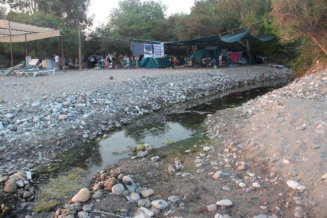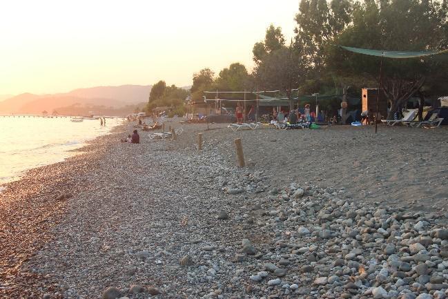 Karaot PublicBeach (Akgöl)is usedasa caravan parkat both sides of facilities. Although there are hardly any barriers, except for a very thin low pavement at one side of the Municipality’s facility and stones placed in wire meshes at the other end, no vehicles or vehicle tracks were seen on the nesting zone.