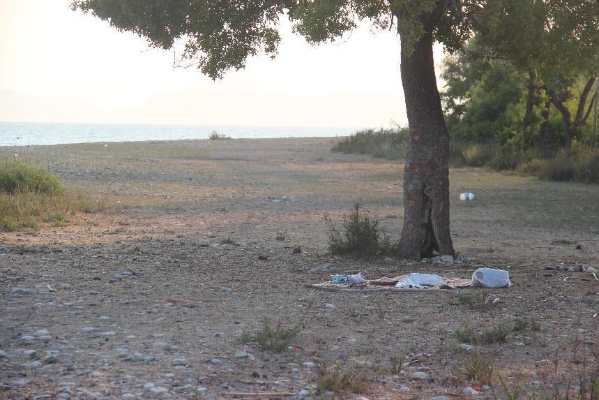 Akmaz beach is also cleaner than last year, although there are still plastic bags and litter at the base of trees (Fig.68b c, Fig.70). Bins were frequentlyplaced around all facilities and caravan parks in the entire SPA, making a difference. Fishing line remains were seen only in 2 spots in the pristine section of Yanıklar (Fig.71), where fishing activities were abundant (Fig.72a b).