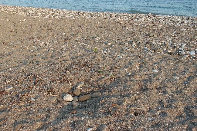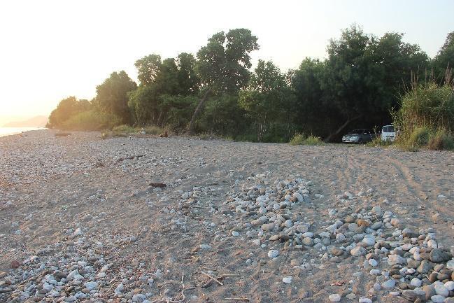 The SPA is still protected on a seasonal basis, not necessarily assigned to the same monitoring and research team every summer. Although no team members were encountered during our survey, the SPA seemed to be monitored more efficiently this summer. The pristine area was well studied, with nests clearly marked with semi circles and predated nests with X marks with large pebbles (Fig.65a b). We observed predation of many nests in this section (Fig.66).