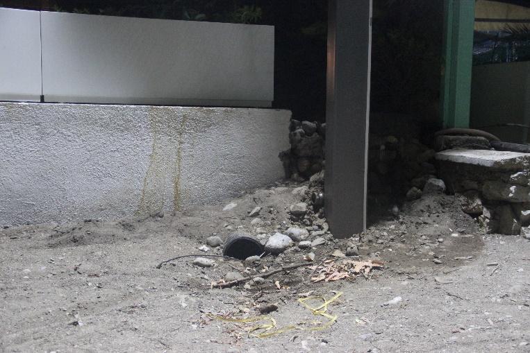 Fig.58. Fethiye SPA, Yanıklar. Plastic drainage pipe outlet at the base of security light’s post between Okaliptüs and Tuana.