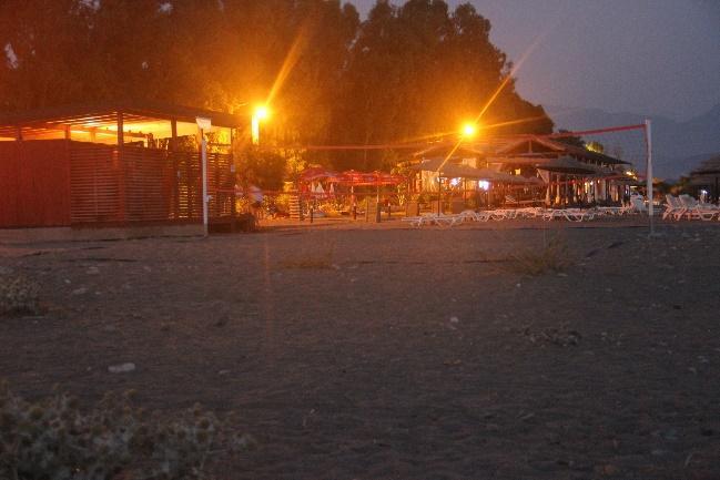 Renovations in the promenade area have finished (Fig.2a b), creating a broad walking space with a wall slightly higher than before, lining the seaside. Orange pinkish lights are embedded along the wall, facing the walking area. Tall lamp posts additionally placed along the wall are not facing the beach, although they are bright white(Fig.3a b). These are new permanent structures in Çalış A and B.The caravan area used byZirkon Camping did not have any permanent structures (Fig.4).