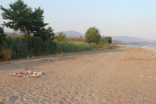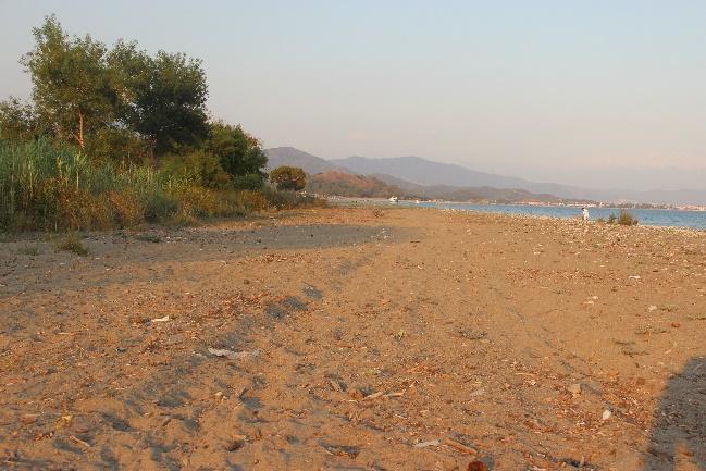 Nesting beach description (Fig.1): The 8 km beach is split in three sections: Çalış, Yanıklar, and Akgöl. Çalış is 2.5 km long and divided into two sections: Çalış B (Koca Çalış northern part) and Çalış A (Küçük Çalış southern part), which is the section that is bordered by a wall and a promenade lined by tourist infrastructures. Çalış Hill marks the end of Çalış and the start of Yanıklar, which extends northward for 4.5 km and includes the so called “small beach” and Karataş beach. Kargı stream marks the border between Yanıklar and Akgöl (1 km, also known as Karaot beach). For a detailed description of the Fethiye SPA nesting beaches see MEDASSET 2009.