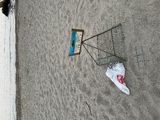 In Çalış B, the distance of zoningpoststo the seachanged fromabout 10metres inthe south part (Fig.16a b) to 5 metres in the north part (Fig.17a b), and beach equipment was kept behind these posts in the majority of the section. In a few locations, some nest cages were seen behind the zoning posts. A caged nest near Lotus Beach was especially far behind the posts, almost double the distance of posts to the sea (Fig.18a). Although beach equipment was moved to the back of zoning posts, the wedding altar in Lotus Beach still stands right behindthe nesting beach (Fig.18b c). Most facilities had around 20 30 sunbeds, while a few larger ones (Resul Bali Sultan, Odyssey, Celina, Leon) had around 100 150 sunbeds. Yücel Beach had four rows of sunbeds behind the zoning posts, with vertical and horizontal walkways in between, carpets placed on the walkways, cushions randomly thrown around, and pavilions (Fig.19a b). Surf Station/Mavi Beach, Surf Beach, Jiva and Celina kept water sports equipment on the nesting beach, close to the waterline, and did not remove the laid AstroTurf (Fig.17a, Fig.20a d). Sunbeds at Surf Beach were not organized and some were very close to the sea. Additionally, boats were observed on the beach in a few areas (Fig.Fig.21). Leon beach had a volleyball court next to sunbeds, completely surrounded by a mesh, and a nest cage was seen near it (Fig.22a d). Next to it, Apache Beach drew attention as they did not comply with the new arrangements, leaving sunbeds and other equipment scattered on the nesting beach (Fig.23a b). There were also wooden stakes erected in the sand in front of the facility, the purpose of which remains unclear at this time (Fig.24). Butik Camping/My Beach had showers on the beach, which directly drain on the sand (Fig.25). All umbrellas in this section were fixed in the sand.