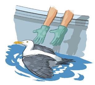Εάν το πτηνό έχει καταπιεί το αγκίστρι ή είναι σε κακή κατάσταση, κρατήστε το επί του σκάφους και επικοινωνήστε με τις αρμόδιες εθνικές αρχές, όπως αναφέρεται στο Τεχνικό Φύλλο 4.
