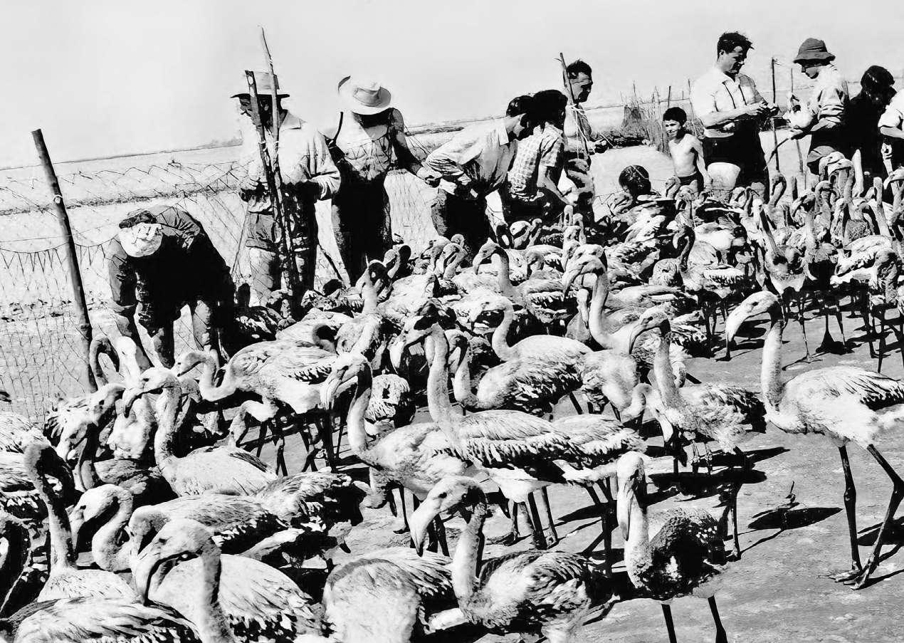 Much of Luc’s success in the Camargue, particularly in re-establishing the greater flamingo population, couldn’t have happened without the cooperation of local inhabitants. These people relied on the wetlands to support their unique way of life, including livelihoods like hunting wild boar, rice farming, salt farming and the manades, groups of semiwild Camargue horses or cattle led by herders or manadiers. Despite how embedded their lifestyles were with the natural world, certain inevitabilities such as flamingos eating crops were understandably unpopular with the Camargue’s residents.