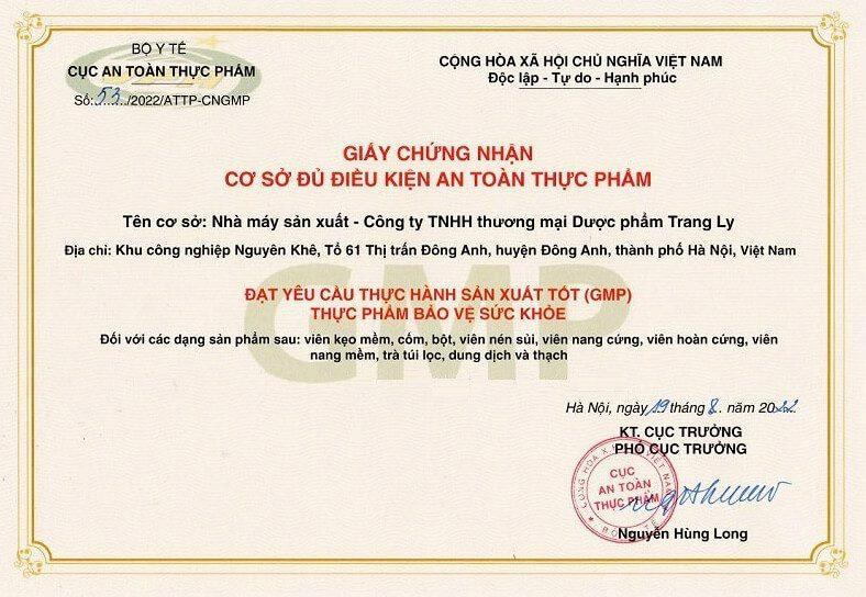 Giấy chứng nhận GMP của công ty Trang Ly