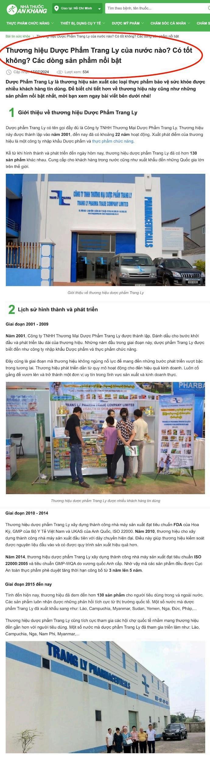 phẩm Trang Ly. Nên chúng ta có thể yên tâm về nhà máy dược phẩm uy tín này.