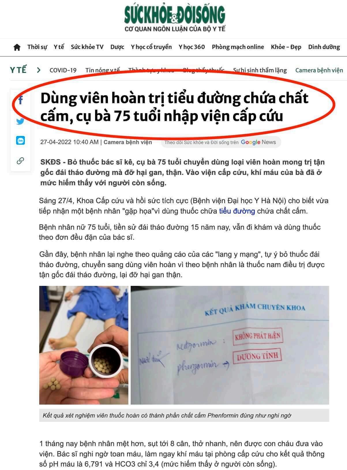 Chẳng hạn như báo Sức Khoẻ Đời Sống (Cơ quan Ngôn luận của Bộ Y tế) vừa qua, cảnh báo thu hồi nhiều dòng tiểu đường chứa chất cấm nguy hiểm!