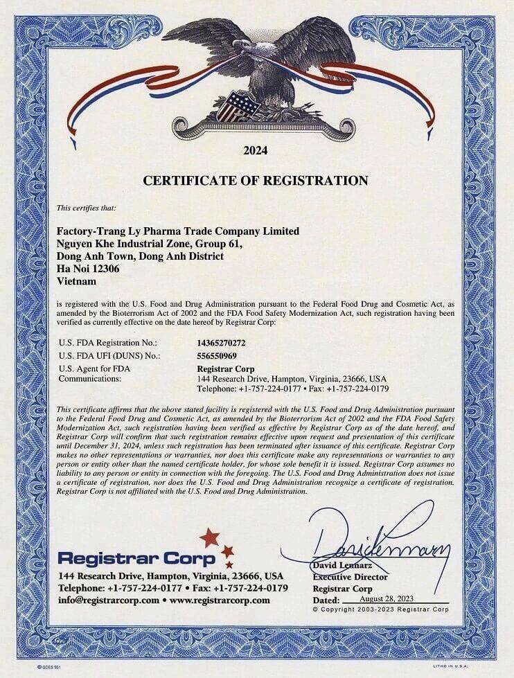 Hơn nữa, công ty Trang Ly Pharma còn đạt được cả chứng nhận của FDA Hoa Kỳ.
