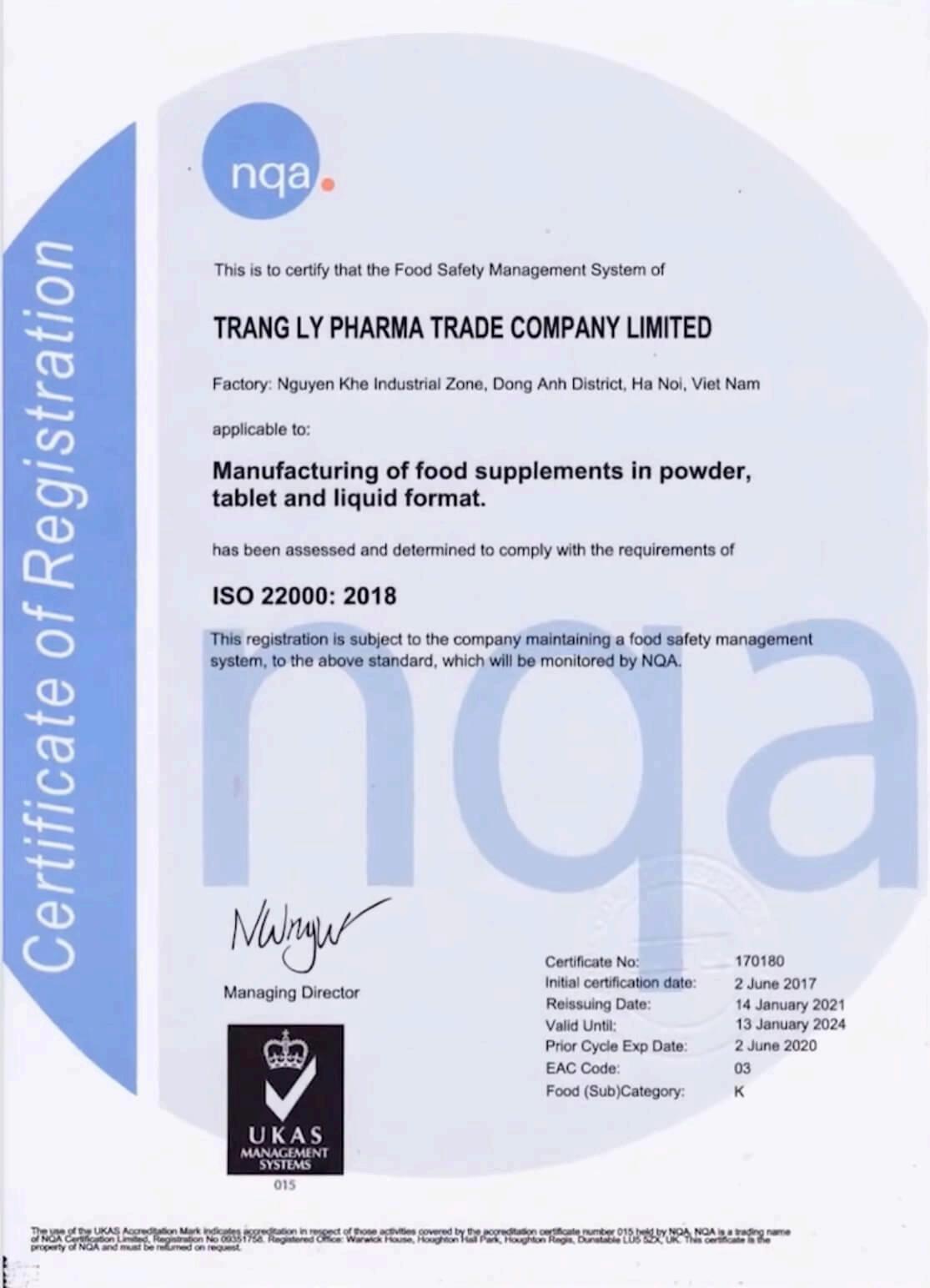 Quốc (United Kingdom Accreditation Service) Đây là chứng nhận uy tín, với những tiêu chuẩn cao cấp của Vương quốc Anh.