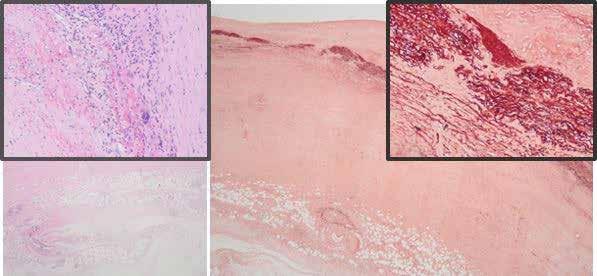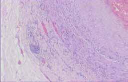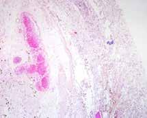 En el resultado de la biopsia de la úlcera gástrica se visualiza mucosa gástrica con focos de metaplasia entérica completa, ligera inflamación cró nica y material fibrinopurulento, sin signos de malignidad. Se ve además presencia de hifas y de esporas micóticas. Debido al hallazgo histopatológico se amplía el tratamiento con Fluconazol a 21 días.