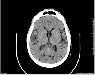 Encontrándose de viaje en un país vecino, la paciente precisó ingreso el día 19 de julio de 2021 por cuadro de un par de días de evolución, consis tente en mareo con giro de objetos, diplopía, hipoestesia en el hemicuerpo izquierdo, y alteración progresiva en el equilibrio y la estabilidad que le limitaban para la marcha. Se le encontraba con nistagmo espontáneo mul tidireccional, Romberg positivo, lateropulsión izquierda, dismetría y pares tesia/hipoestesia en extremidades izquierdas. Además de realizar analíticas de rigor, ECG (rigurosamente normales) y PCR para COVID (negativa), se le practicó TAC con contraste IV, descartando sangrado, isquemia, hidroce falia u otras alteraciones significativas recientes. Le fue instaurado tratamiento con metilprednisolona 60 mg IV, que se aumentó luego a 250 mg/ día. El día 21 de julio de 2021 se le realizó una nueva resonancia magnética, que además de los hallazgos reportados en el estudio del 1 de julio, señaló cambios inflamatorios con edema a nivel pontino y peduncular bilateral.