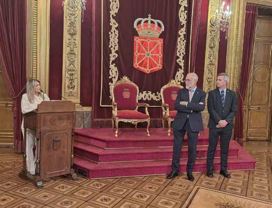 Familiares y compañeros de profesión en el Salón del Trono del Palacio de Navarra.