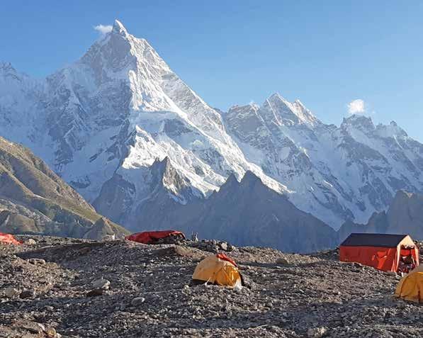Caminar rodeados de las montañas más salvajes del planeta. Primero agujas graníticas verticales increíbles de 6.000 metros. Más adelante, esbeltas cumbres nevadas de 7.900 metros. Y finalmente llegamos a Concordia, a 4.600 metros de altitud. Una especie de meseta de hielo y rocas, donde se juntan una docena de glaciares, rodeada de quince o veinte picos, entre ellos el K2 de 8.611 metros, y otras tres montañas de más de 8.000 metros.
