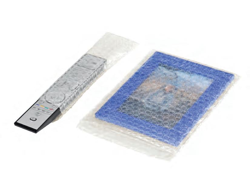 5 Luftkissentypen aus vorgeschweisster PE-Folie passend zum BIG-BUBBLE/MINI PAK’R ® Gerät durch Perforation leicht trennbar grosse Platzersparnis im Vergleich zu vorproduziertem Füll- & Polstermaterial in Säcken oder Kartons