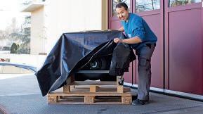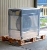 Robuste Palettenhaube schützt Ihre Waren gegen Staub, Schmutz und Nässe oder umhüllt sperrige Güter.