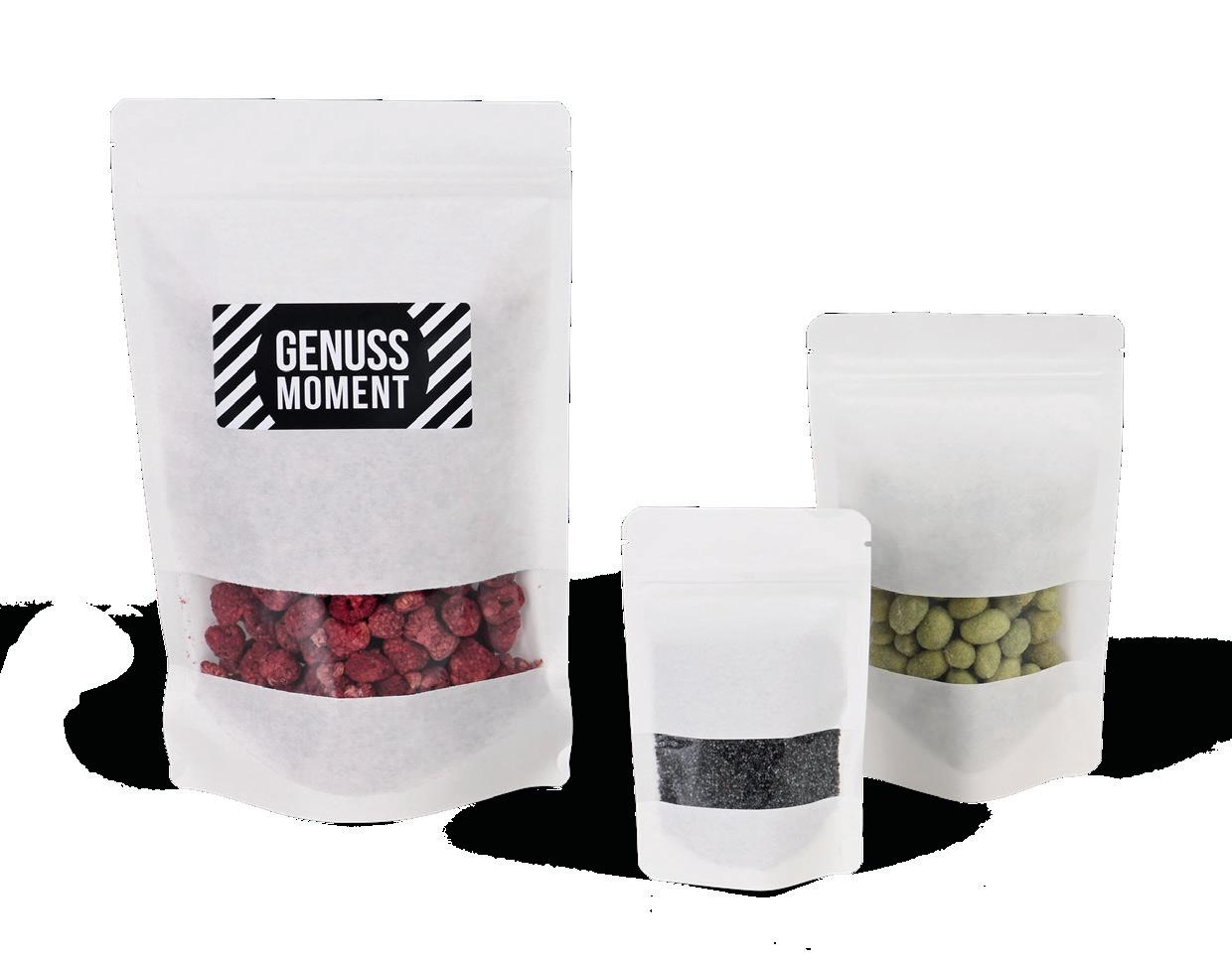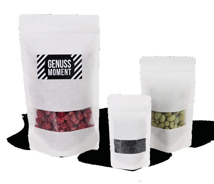 Standbodenbeutel weiß mit Sichtfenster