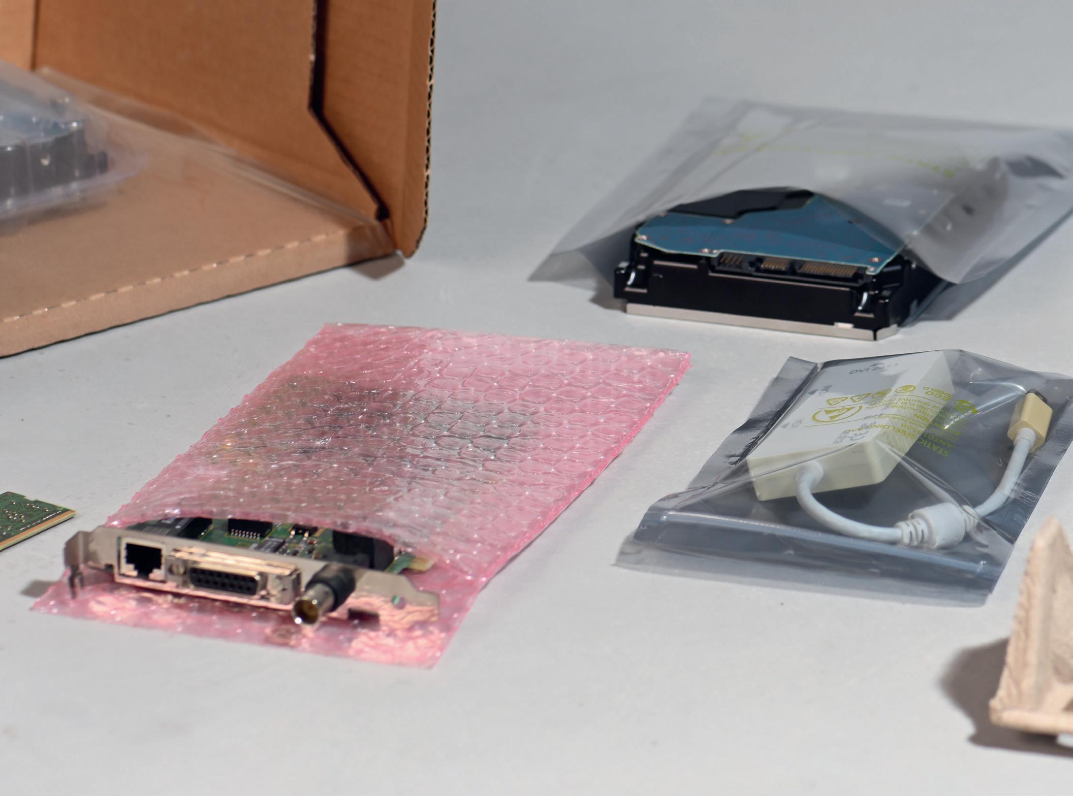 Karton mit eingelegtem Sack und Füllmaterial zur sicheren Fixierung und Transportsicherung von Metallteilen.